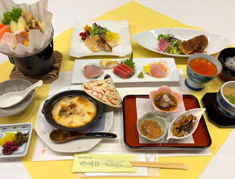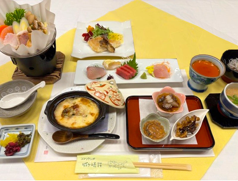 新鮮な食材を厳選し、城ケ崎荘自慢のお料理でおもてなしいたします。